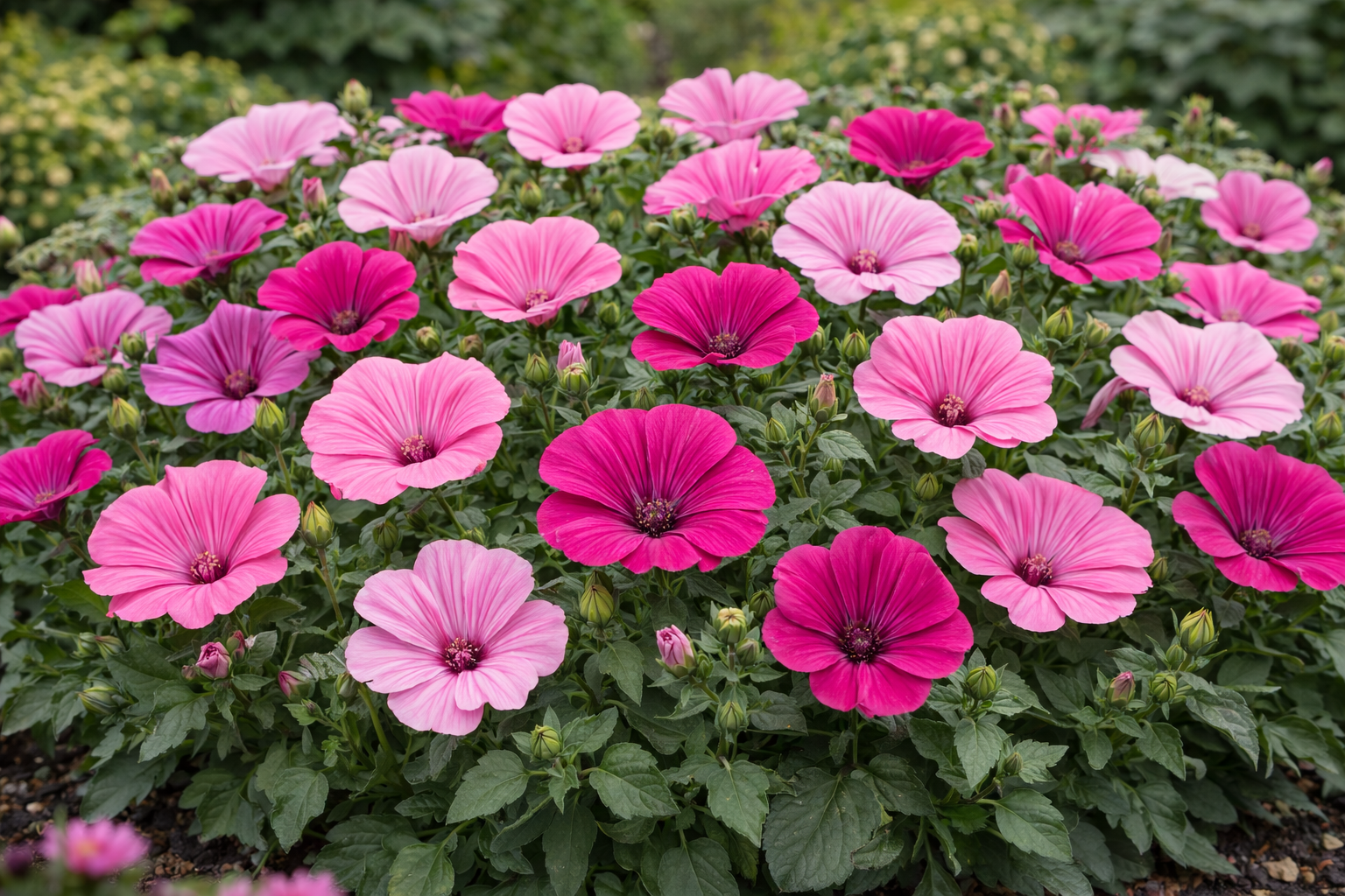 Lavatera is an elegant plant known for its large, delicate flowers in shades of pink, often marked with deeper veins. Easy to grow, it produces abundant blooms throughout the summer and adds a soft, natural touch to any garden.
